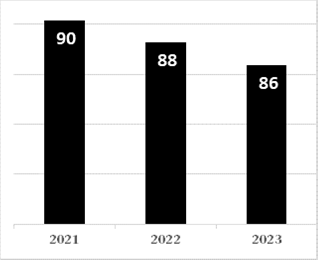 Figures from the documents accompanying Budget 2022 reveal the current and expected levels of debt, and debt financing costs, that Ireland is facing - see Charts 1 and 2. The pandemic has resulted in the net national debt climbing from 82% of national income (as measured by GNI*) in 2019 (Budget 2020) to reach an expected level of 90% this year and 86% by 2023. Fortunately, interest costs remain low with these costs expected to be €3,395m in 2022 - a reduction on the costs faced in 2020 (€3,830m). However, although debt costs are low, the scale of debt remains an issue and a strategic risk to the state in the longer term.