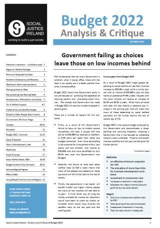 Will Budget 2022 deliver a fair recovery from the social and economic impact of COVID-19? How were the available resources distributed? What effect will the budget have on inequality? How will Ireland’s most vulnerable fair from this Budget? What measures deal with the housing crisis? Did Government deliver what is required for a Just Transition? Could better choices have been made? What measures have been ignored and in what general direction does this budget take the country?