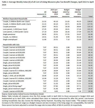 Social Justice Ireland has consistently argued for the prioritisation of low-income welfare dependent families in Budgetary policy and welcomes how recent cost of living supports have particularly assisted this group. However, we are concerned that the permanent changes to income taxation levels in recent Budgets have shifted away from this approach and regrettably expect that much recent progress will be reversed.