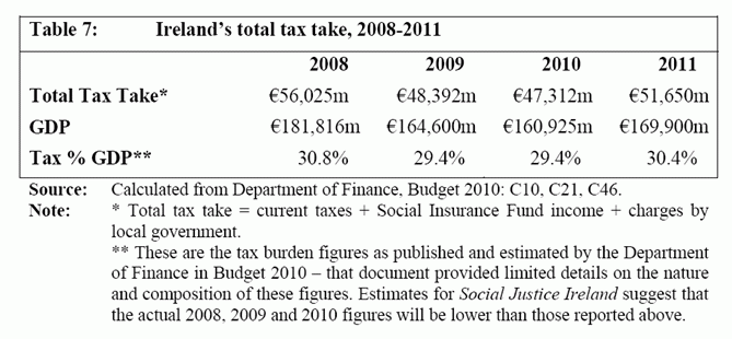 Ireland's total tax-take is among the lowest in the EU and should be increased to produce just and fair adjustment