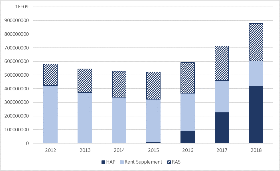 Chart 2: Government Expenditure on RAS, HAP and Rent Supplement, 2012-2018