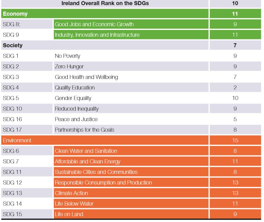 Table 1 Ireland’s Rank by Dimension and by SDG